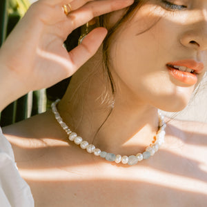 Alma Venus Charm Necklace (Aqua Blue & Light Green)